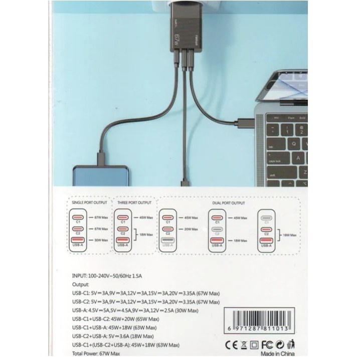 با پشتیبانی از فناوریهای شارژ سریع مانند Power Delivery (PD 3.0)، Quick Charge (QC 3.0)، و سایر پروتکلهای پیشرفته، این شارژر قادر است گوشیهای هوشمند، تبلتها، هدفونهای بیسیم و حتی لپتاپهای سبک را در کمترین زمان ممکن شارژ کند.