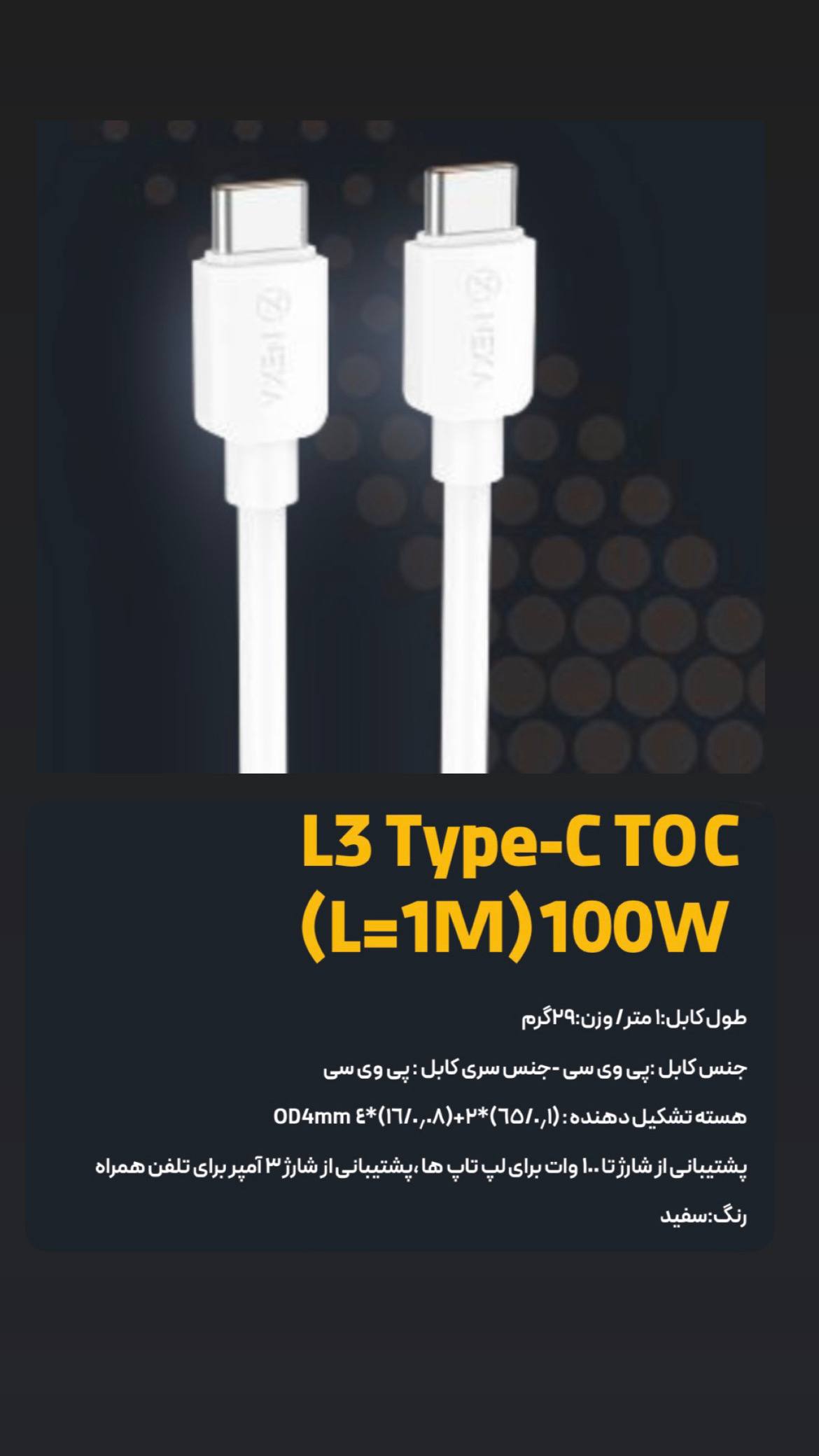 کابل شارژ 100 وات مدل L3 با سری تایپ سی به تایپ سی