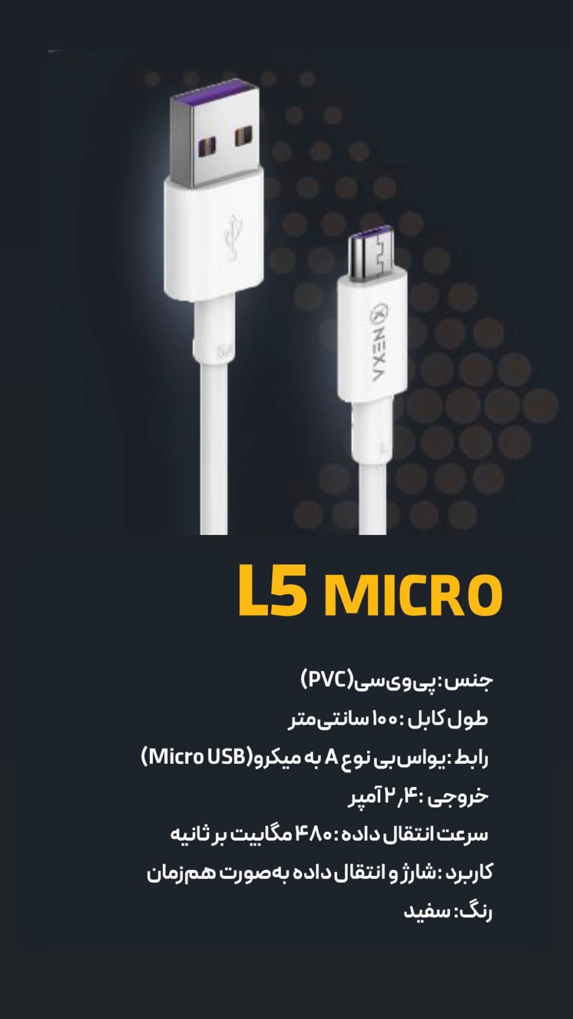 کابل شارژ برند نکسا مدل L5 با سری میکرو