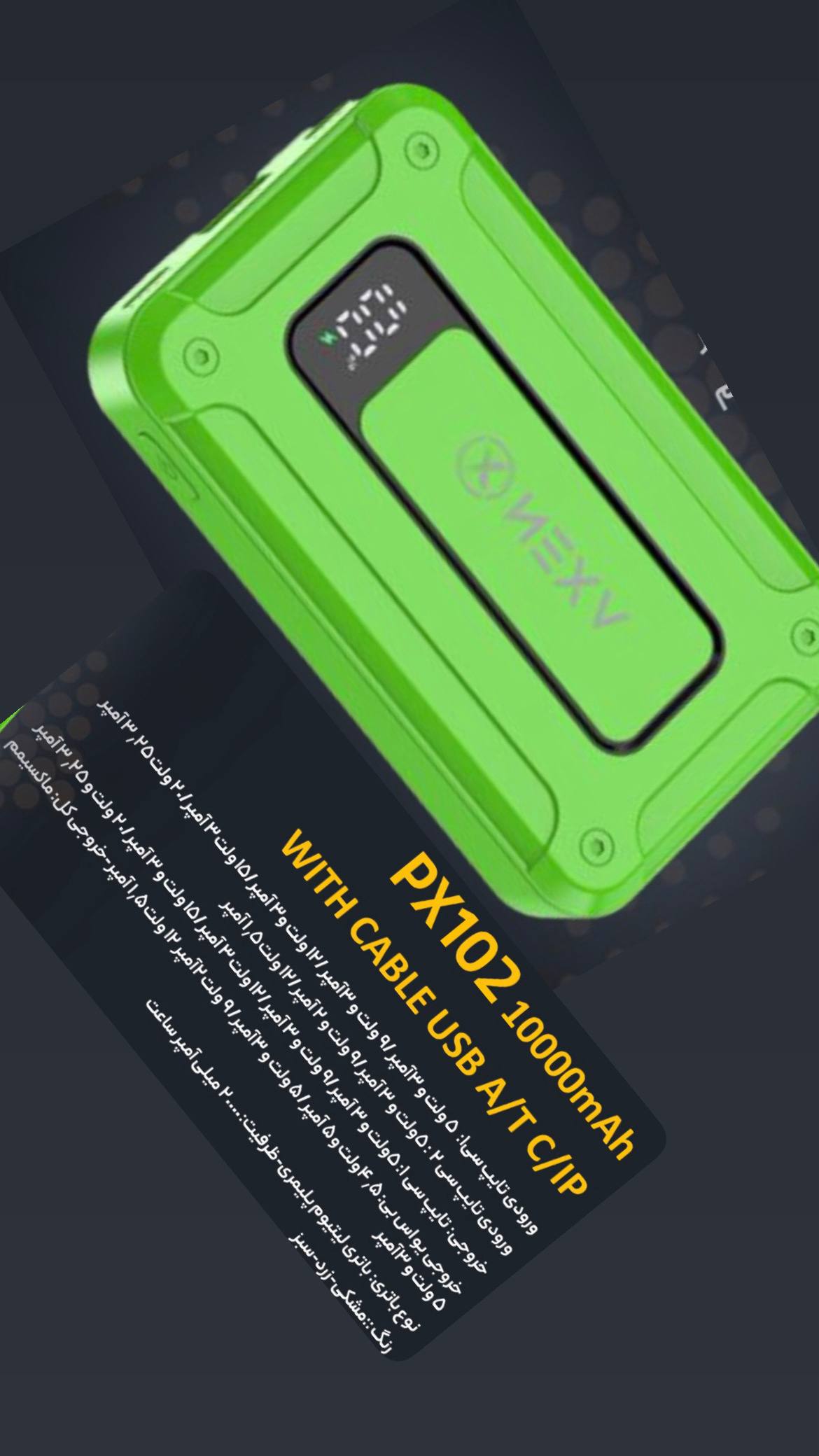 پاوربانک 22.5وات فست شارژ مدل PX102 ظرفیت 10000 میلی آمپر ساعت